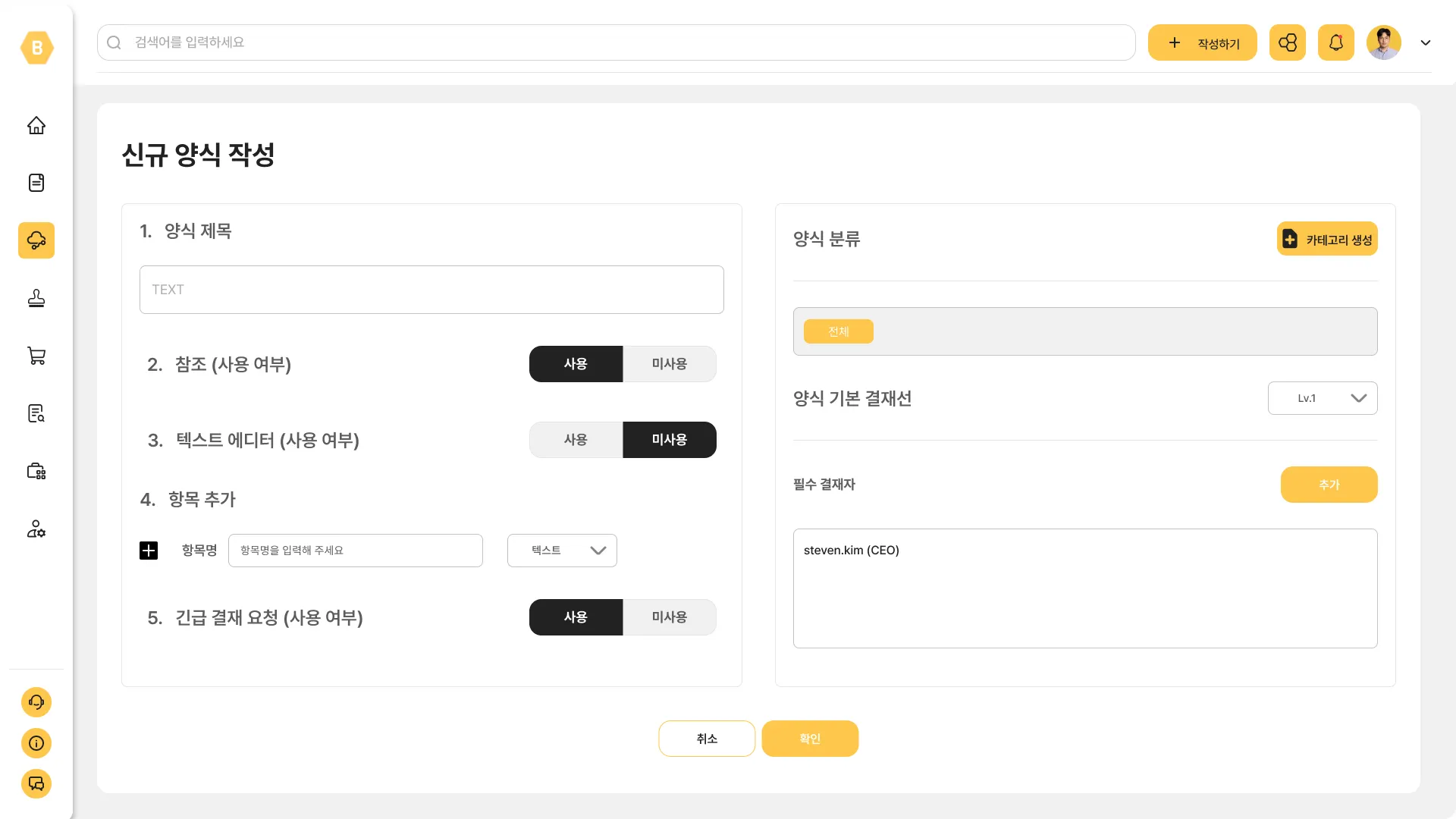 직관적이고 자유로운 문서 양식과 손쉬운 작성과 상신, 자동으로 생성되는 승인 플로,